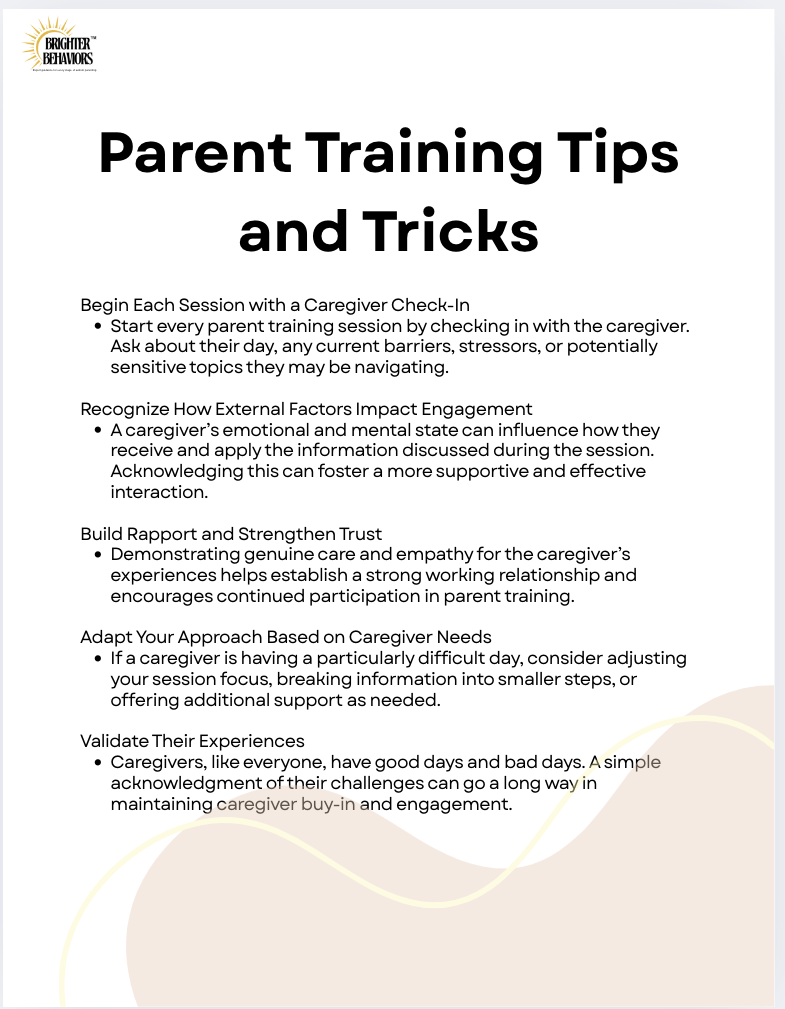 Enhance your parent training sessions with this BCBA Parent Training Toolkit! This digital download includes a ready-to-use checklist to help BCBAs determine key discussion topics for caregiver meetings, a blank customizable checklist for individualized planning, a printable paper calendar for scheduling, and expert tips & tricks to improve caregiver training and collaboration. Perfect for streamlining parent training, improving communication, and ensuring consistency in ABA services.