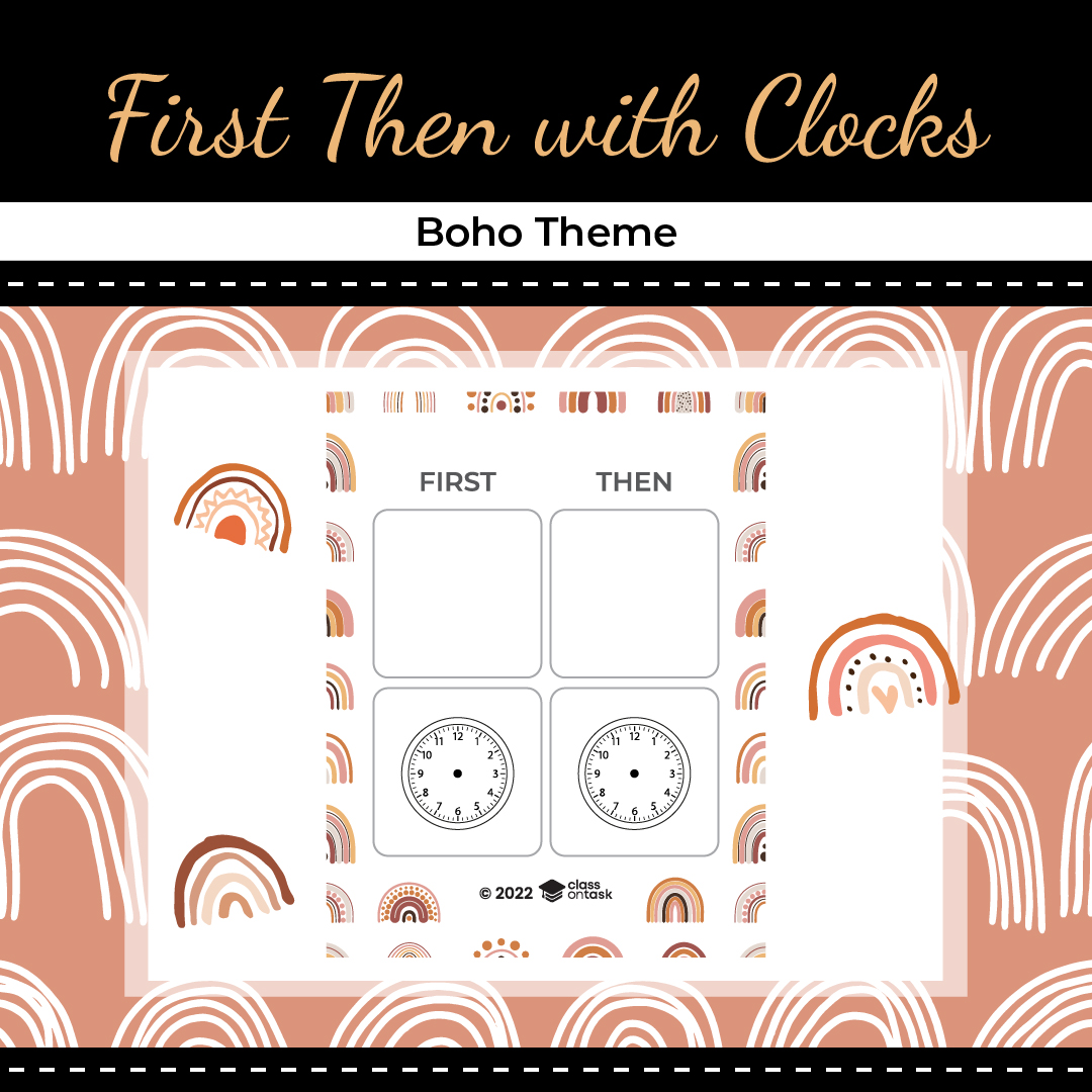 First, Then Board with Clocks – Boho Theme