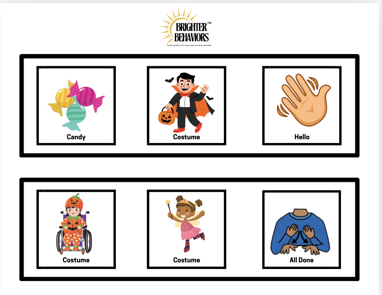Make Halloween fun, predictable, and stress-free with this free digital download of Halloween and trick-or-treating visuals—created by Brighter Behaviors, a virtual parent training company supporting caregivers of autistic and neurodivergent children across Wisconsin and beyond.
