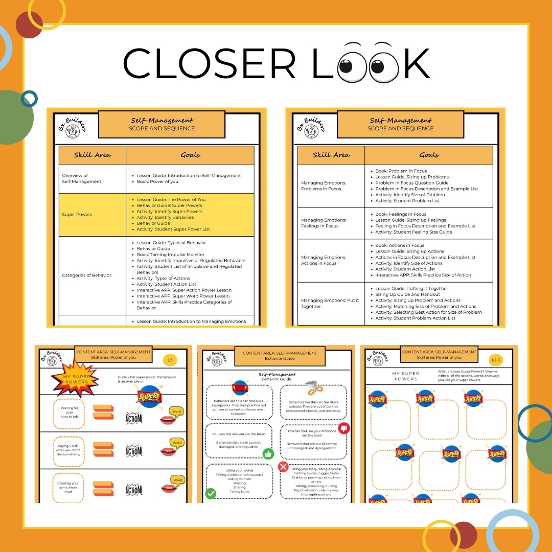 Attention Special Educators, Therapists, and Parents! Introducing the Bx Self-Management Super Power bundle, your ultimate tool for cultivating your learners’ inner super powers. Designed to nurture personal strengths and empower individuals to navigate the complexities of emotional and behavioral management with ease. Tailored specifically for neurodivergent individuals, our program equips learners with the skills they need to conquer challenges and harness their unique abilities. Join us on a journey towards self-mastery and unlock the full potential of your students with the Bx Self-Management Super Power bundle today!